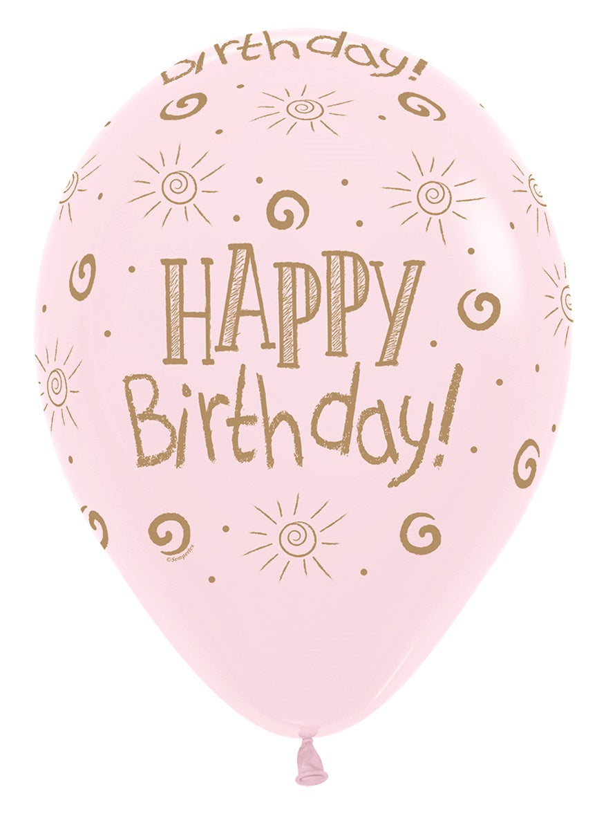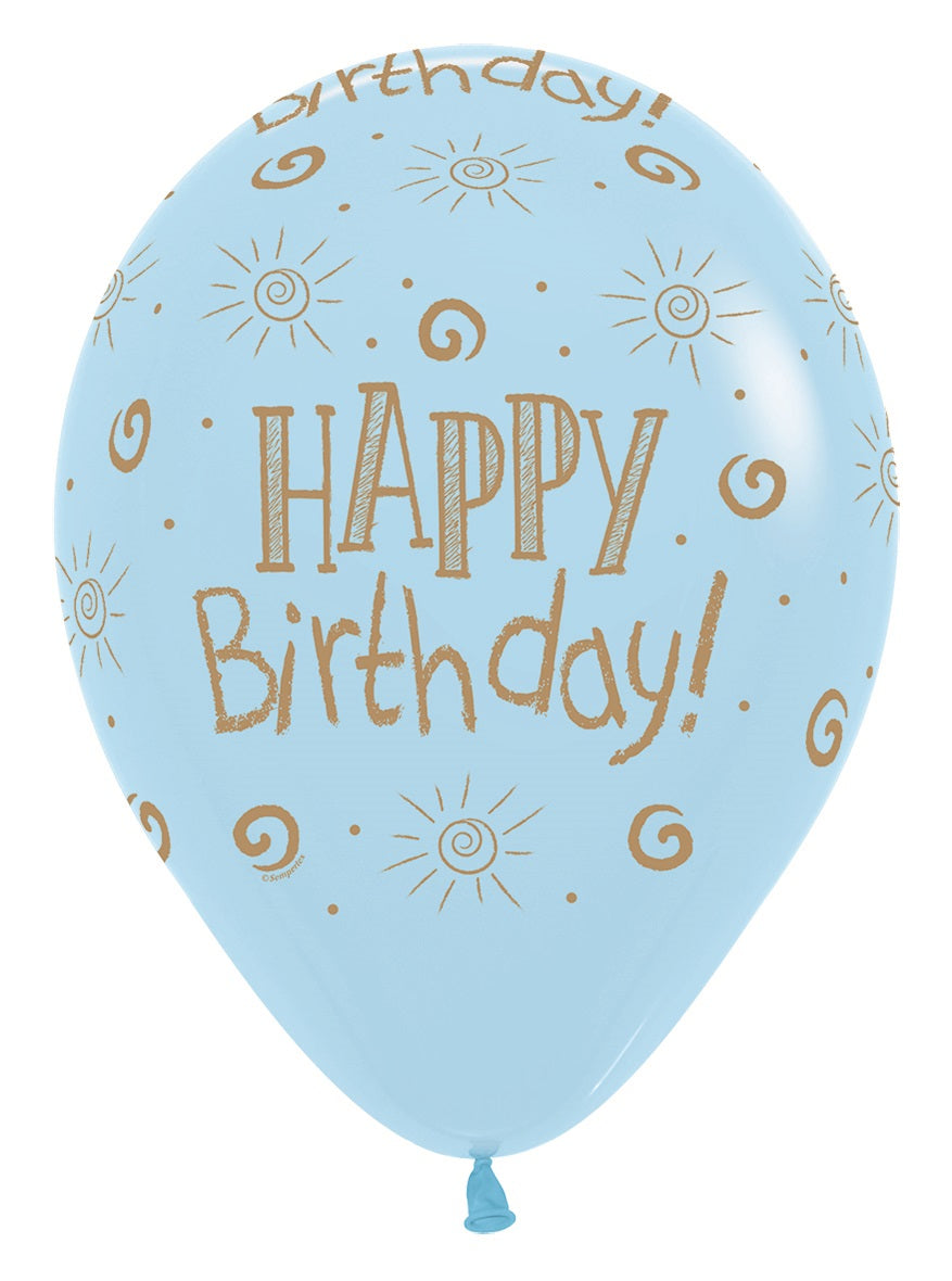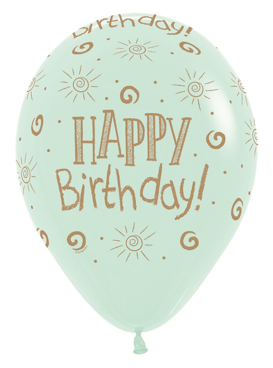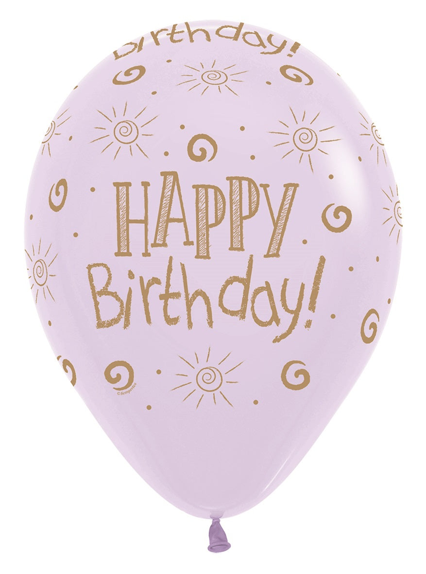 Brighten your birthday celebration with these 12" Sempertex Happy Birthday Sun Pastel Matte Assortment Latex Balloons. Each bag includes 25 beautifully muted pastel balloons featuring cheerful sun designs, perfect for creating a warm and inviting atmosphere. Made from durable latex, they offer long-lasting color and a soft matte finish that complements any party décor. Make your special day shine with these charming balloons.