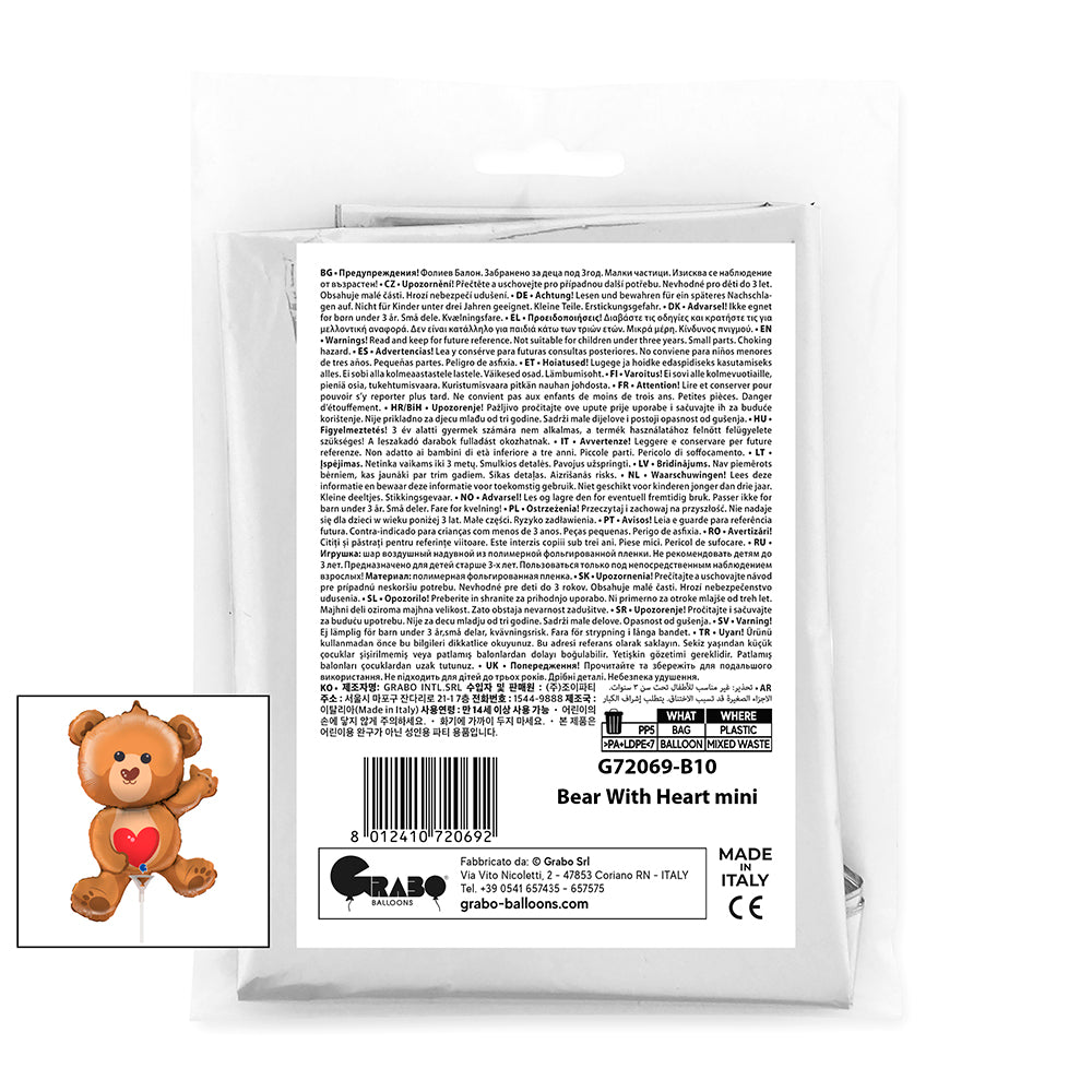 Bring instant charm to any celebration with this delightful 14" Mini Bear With Heart Foil Balloon. Perfect for baby showers, Valentine's Day, or get-well occasions, this adorable bear clutching a heart adds a touch of warmth and personality to your party décor. The vibrant foil construction ensures long-lasting shine and durability, while the compact size makes it ideal for balloon bouquets, gift toppers, or standalone displays. Easy to inflate and arrange, it's a crowd-pleasing choice that guests of all ages will love. Create memorable moments with this sweet, heartfelt addition to your event.