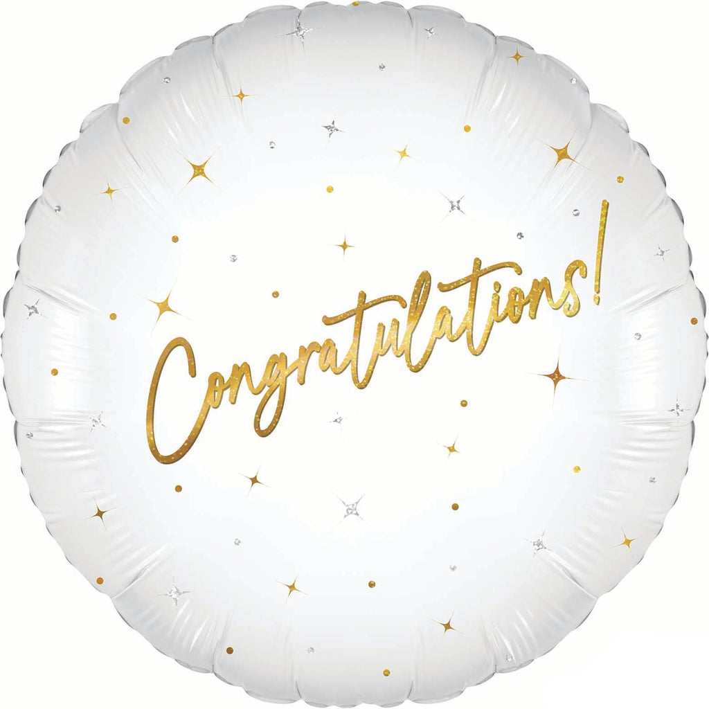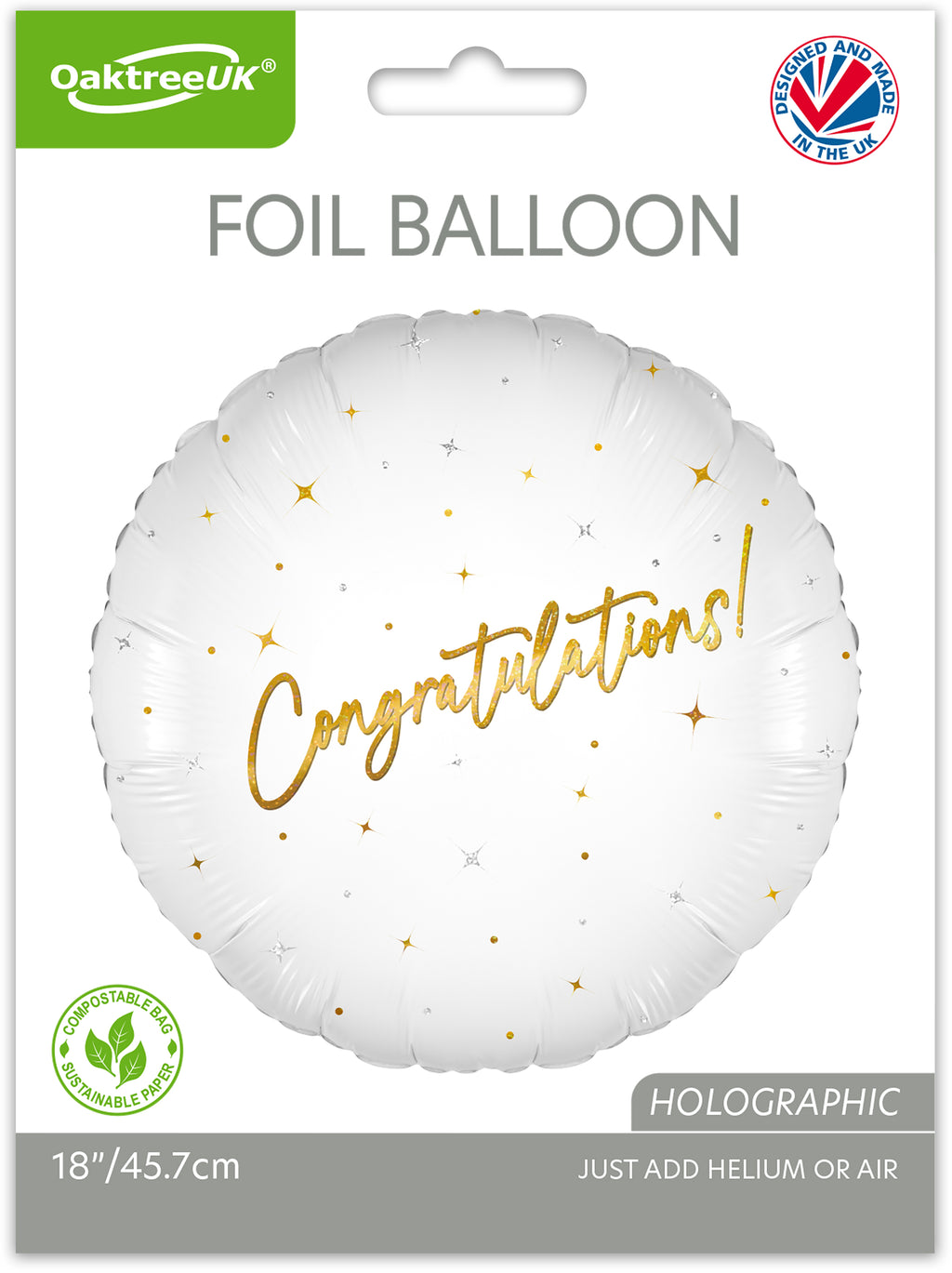 Celebrate in style with this stunning 18" holographic foil balloon featuring an elegant sparkle white design and "Congratulations" message. The shimmering holographic finish catches the light beautifully, adding a touch of sophistication to graduations, promotions, achievements, and special milestones. Self-sealing valve makes inflation quick and easy. Perfect as a standalone statement piece or combined with other balloons for a dynamic display. Reusable and long-lasting when properly stored.