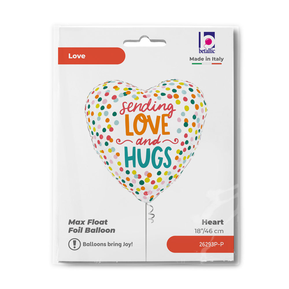 Spread love and joy with our 18" Heart Sending Love and Hugs Foil Balloon! This heart-shaped balloon is a perfect addition to any celebration, featuring a charming design and durable foil material. Show someone you care with this heartfelt balloon!