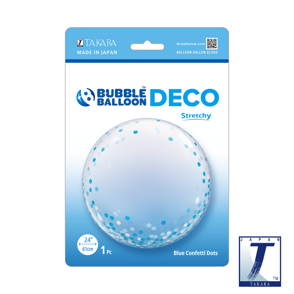 Add a vibrant touch to your celebration with this 24" Deco Bubble Balloon featuring playful blue confetti dots. Its transparent design filled with colorful confetti creates a festive atmosphere, perfect for birthdays, parties, or special events. Lightweight and eye-catching, it effortlessly enhances any décor, making your event unforgettable.
