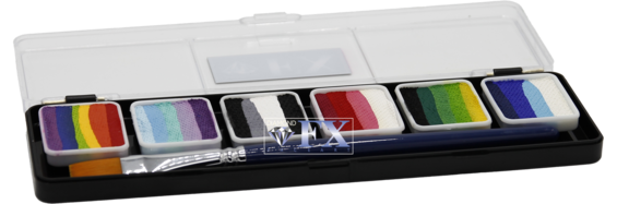 he SP6R Splitcake Palette – Shine Essential is a compact yet powerful palette featuring six of Diamond FX’s most loved split cakes. Ideal for both professionals and hobbyists, this set gives you essential color combinations in one slim, travel-friendly palette; perfect for face-painting, body art, parties, and events.