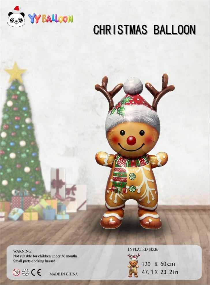 Add a sweet touch to your holiday celebrations with this 59" Giant Gingerbread Man Foil Balloon. Its vibrant design and large size make it an eye-catching decoration that brings festive warmth and fun to any party. Made from durable foil, it holds helium well for long-lasting festive cheer. Perfect for spreading holiday joy, this balloon transforms your event into a memorable, delightful experience for all ages.